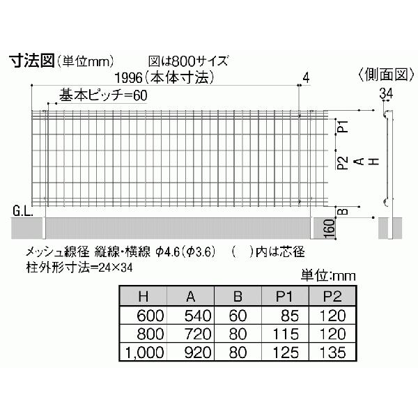 フェンス スチール メッシュフェンス ネットフェンス 外構 DIY 屋外 塀 フェンス本体 T80 H800 高さ80cm LIXIL シンプルメッシュフェンス