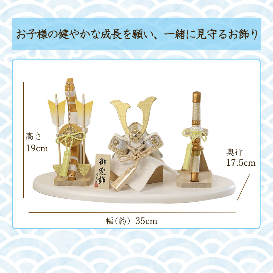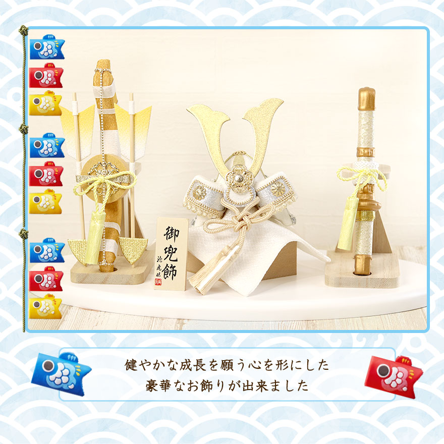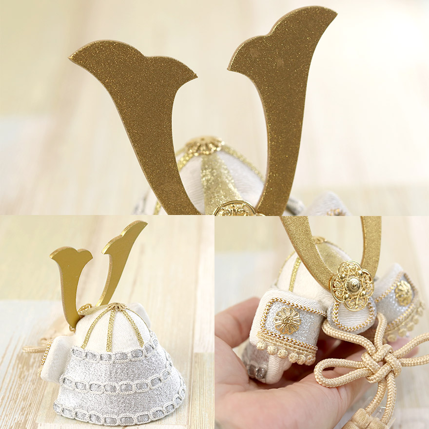 和洋どちらのお部屋にもマッチする、優しい彩色の兜飾りです。