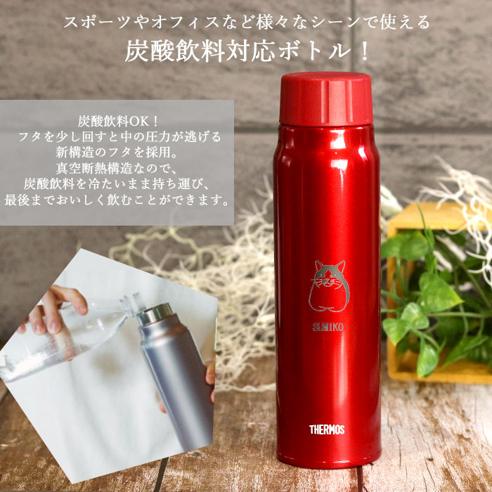 サーモス 水筒 保冷 炭酸飲料 ボトル 500ml 名入れ ねこデザイン FJK-500 箱入り 送料無料 炭酸 THERMOS かわいい かっこいい スポーツ ジム 母の日