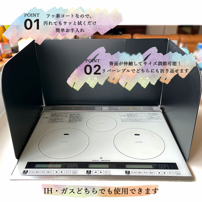 料理の油跳ねや汁飛びの汚れを防いでくれる。