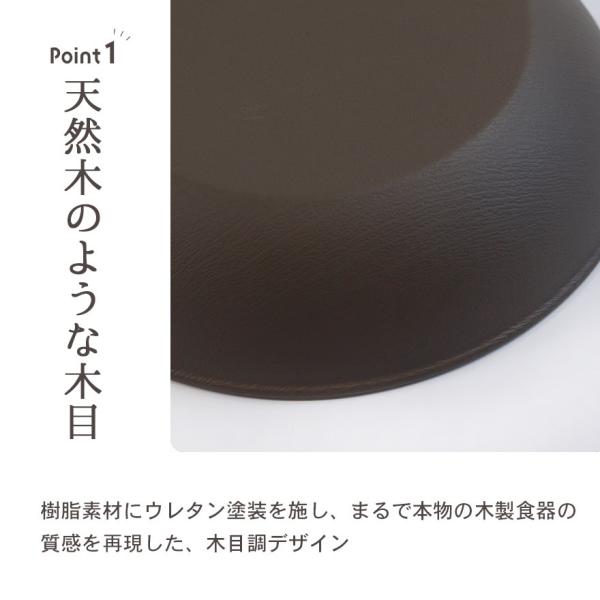 樹脂素材にウレタン塗装を施し、まるで本物の木製食器の質感を再現した、