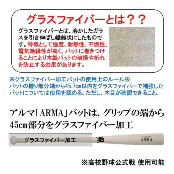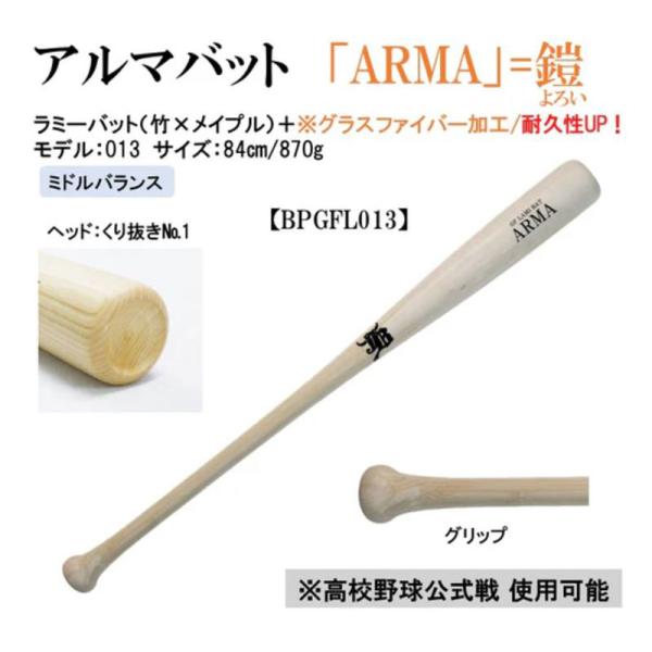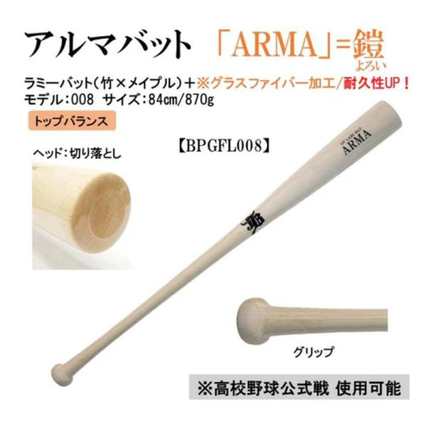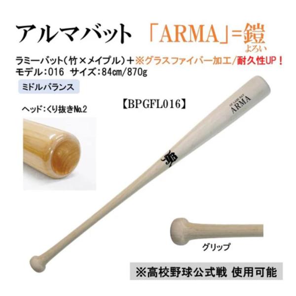 和牛JB 硬式木製バット アルマバット ARMA 竹+メイプル+グラスファイバー加工 高校野球対応 BPGFL
