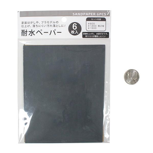 耐水ペーパー(サンドペーパー) 6枚入(♯600・♯1200・♯1500 各2枚) (100円ショップ 100円均一 100均一 100均)