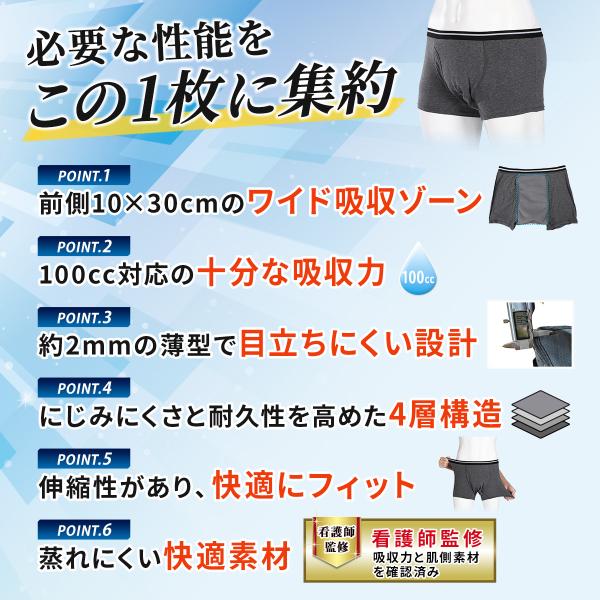 **100cc対応のメンズ吸水パンツ(40〜60代向け)**です。