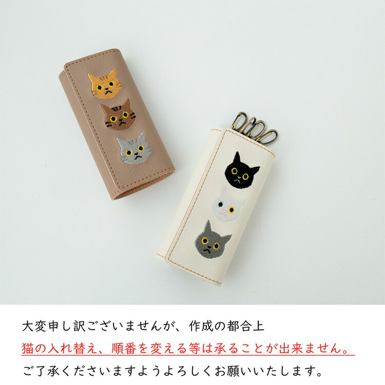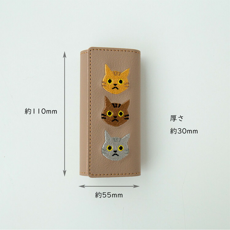 商品名:キーケース 【 刺繍 3匹の猫 】 鍵 鍵入れ キーホルダー スマートキー 車 4連 本革 レザー 猫の日 茶白 黒猫 メンズ レディース シンプル 誕生日 父の日 メール便送料無料