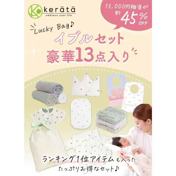 【数量限定】 (ケラッタ) イブル 福袋 ベビー 2025 新生児 赤ちゃん 豪華13点セット クーポン付き 出産準備 抱っこ布団 おくるみ 沐浴ガーゼ 肌着 送料無料