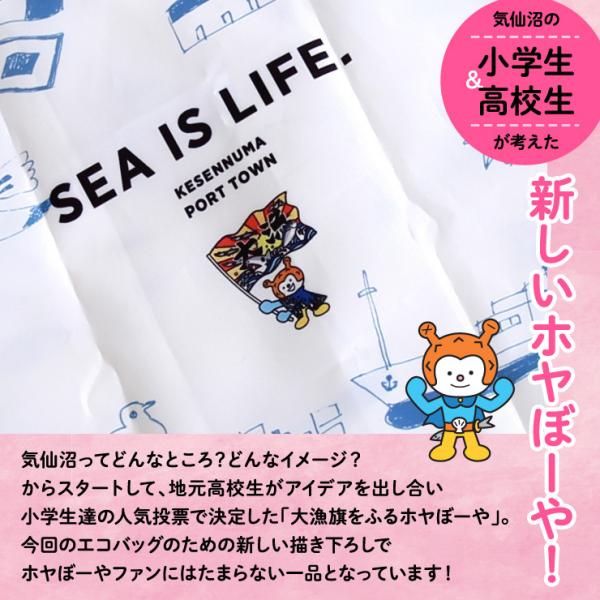 デザインされている「大漁旗をふるホヤぼーや」は、今回のエコバッグのために