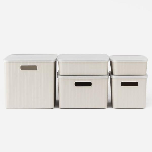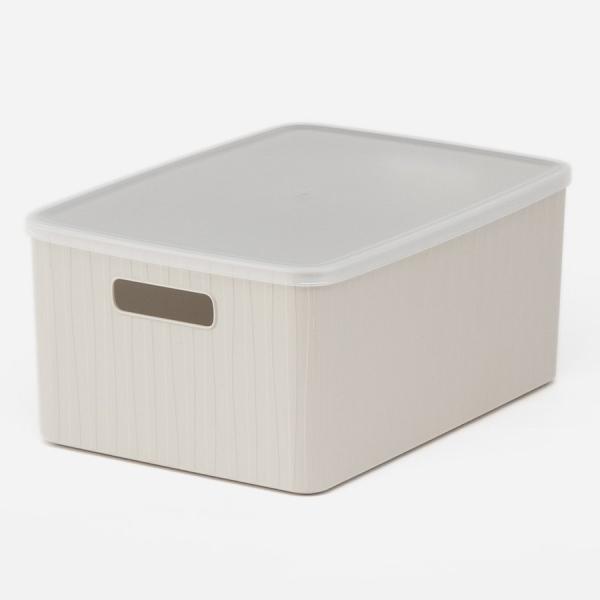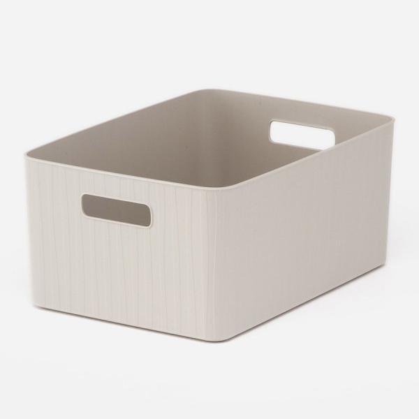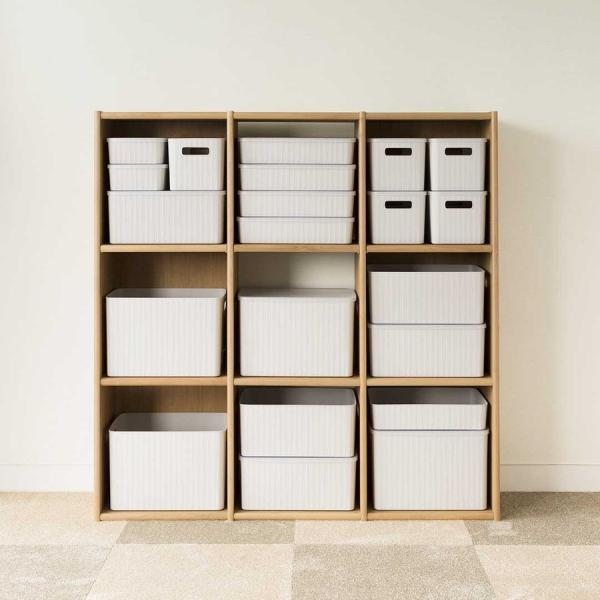 BOXのライトグレー色は、汚れが目立ちにくく、リビングなどに馴染む色合いが魅力。ストライプ柄なので、無機質になりがちな収納空間に、木々のようなナチュラルな印象を与えます。