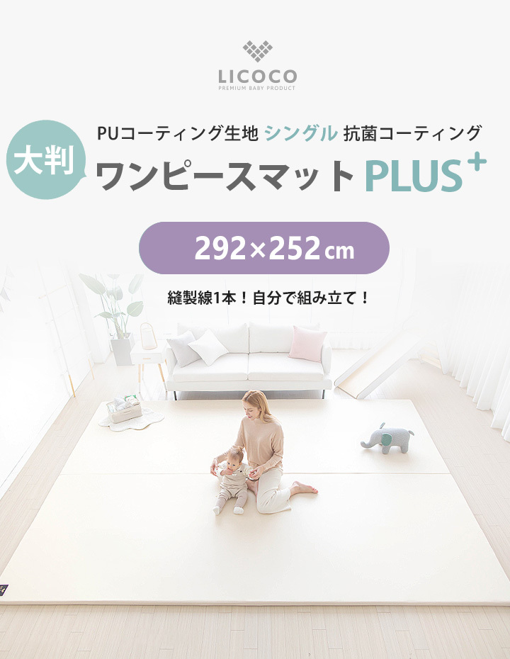 プレイマット ワンピースマット 292×252 日本最大級大判 マット フロア 厚手 大きい セーフティグッズ 防音 ノン ホルムアルデヒド 折りたたみ Ggumbi LICOCO