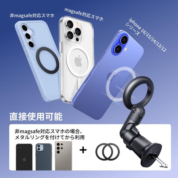 UGREEN 車載ホルダー magsafe式 エアコン吹き出し口対応 マグネット 多角度調整可能 超強磁力 片手操作 車 スマホホルダー マグセーフ