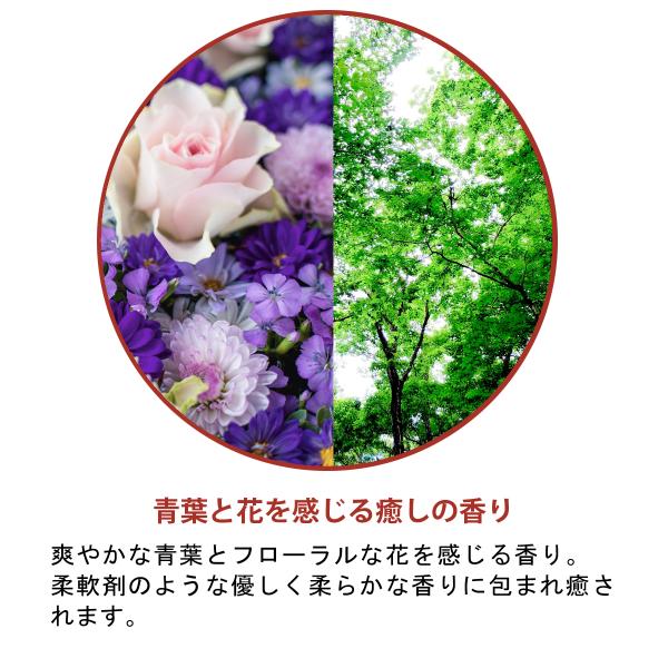 ■香り:フルーティーグリーンフローラル 爽やかな青葉とフローラルな花を感じる香り。 柔軟剤のような優しく柔らかな香りに包まれ癒されます。
