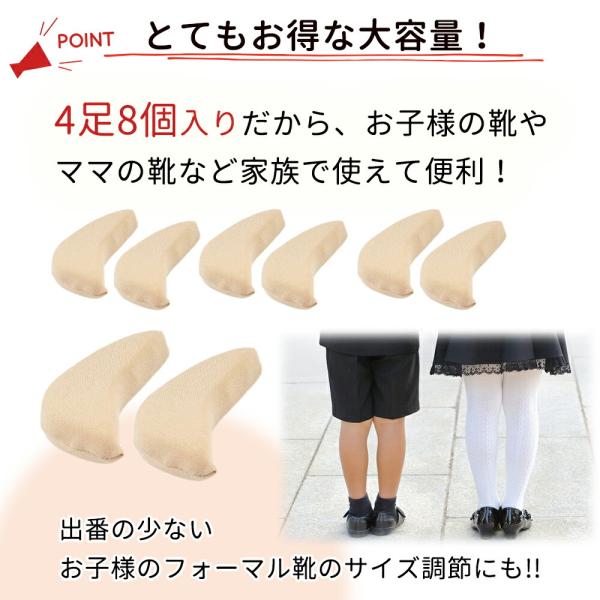 つま先クッション/同色4足セット/8個入り/つま先パッド/つま先まくら/滑り止めクッション/インソール/指先/ふかふか/パカパカ防止/靴脱げ防止/ハイヒール/痛くない/フットケア/靴/サイズ調節/つま先隙間埋め/衝撃吸収/靴ずれ/つま先パンプス/ブーツ/子ども/子供/レディース/メンズ/革靴/つま先保護/シューズケア/靴ケア用品/ふわふわ/指の負担軽減/ブラック/ベージュ/スニーカー/靴ずれ/優良配送/送料無料