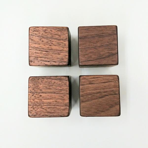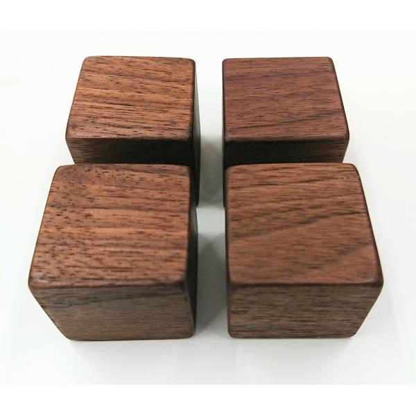 天然ウォールナットの無垢材をキューブ状に削って製作した木製インシュレーター、4個セットです。