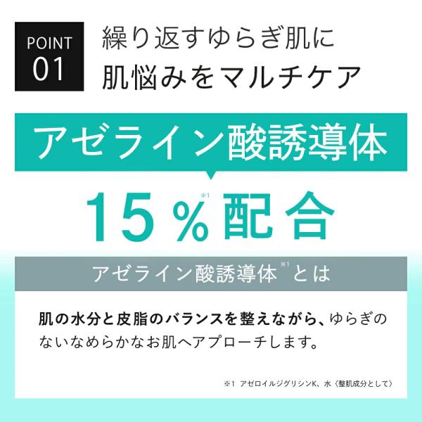 肌の水分と皮脂のバランスを整えながら、ゆらぎのないなめらかなお肌へアプローチします。