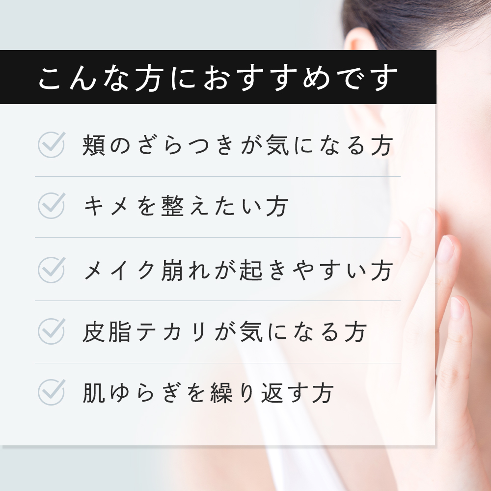 肌のキメを整え、乾燥から守り、健やかな印象をサポートします。