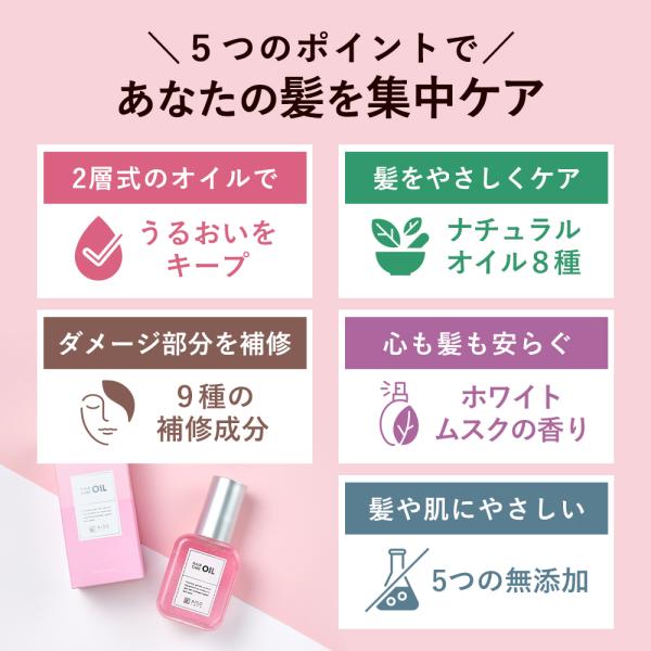 オイル層:髪の指通りを滑らかにして、摩擦や熱から髪を守る