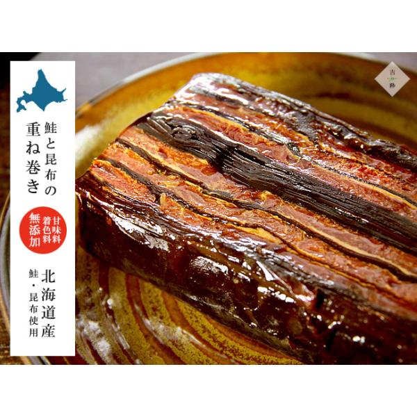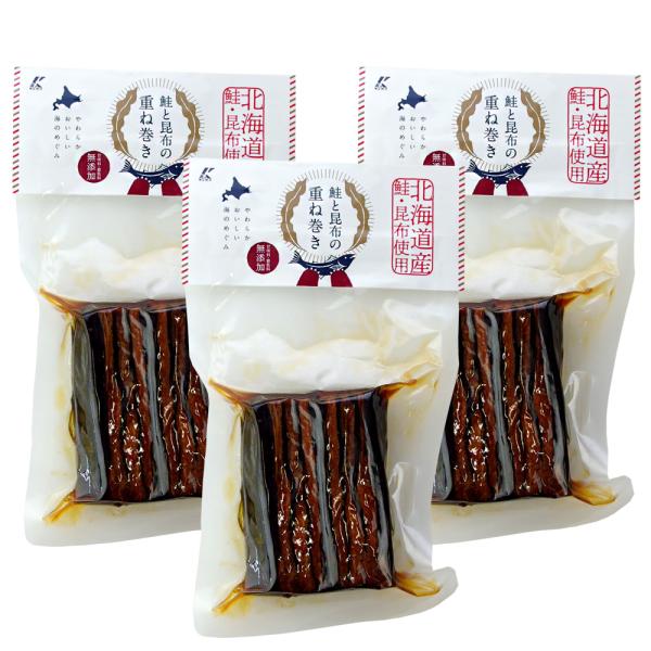 鮭と昆布の重ね巻×3個 【北海道産鮭 北海道産昆布】 ハーフサイズ【道東産昆布使用】【昆布巻 昆布加工品 】【無添加】【メール便対応】