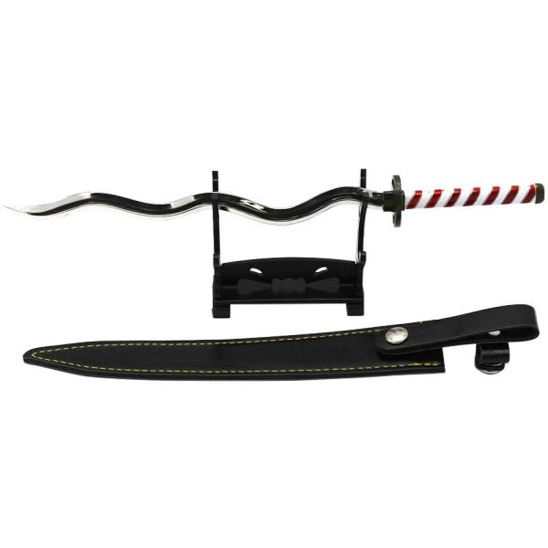 ★ 刀は長さ約26cm、亜鉛合金製で重さ約120g。 台座はプラスチック製、組立要。また、台座は製造時のバリが付いていることがあります。ご了承ください。ヤスリ等で除去できます。
