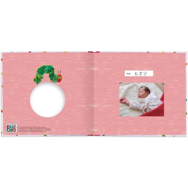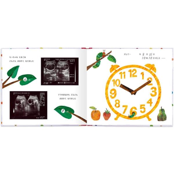 はらぺこあおむしのストーリーに合わせて写真を貼っていくと絵本のようなアルバムが完成します。