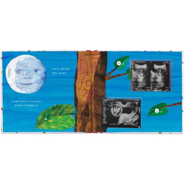 エコー写真から貼ることができ、写真13枚の成長記録がメッセージとともに残せる「仕掛け絵本アルバム」です。