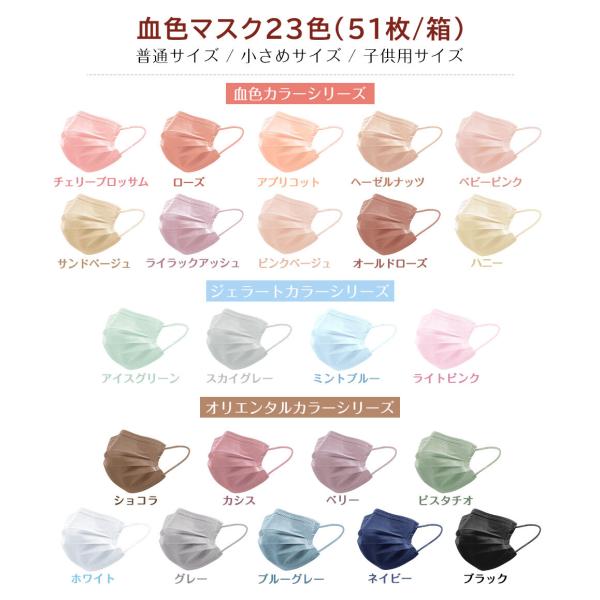 【 ライラックアッシュ 】耳が痛くなりにくい 血色 マスク 不織布 レギュラー 普通 サイズ 51枚入り