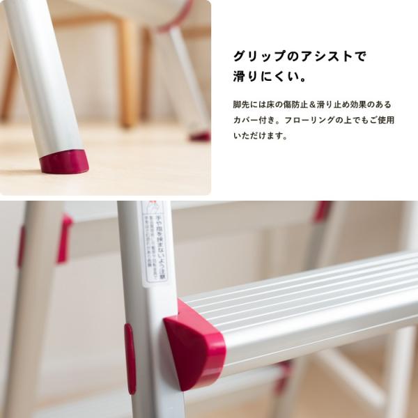 【ポイント5倍 4/9(木)〜】アルミ 踏み台 2段 高さ54cm 滑り止め 折りたたみ 丈夫 軽量 持ち運び 耐荷重100kg 室内 屋内 家庭用 床の傷防止カバー