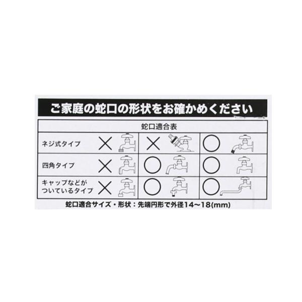 ◇◇ 【特長】 ●ホースをつないだままで、3つの機能を切替できます。(下向きストレート・下向きシャワー・横向きホース) ●ホースを外さず手洗いや水汲みができます。 【仕様】 ●商品サイズ:約160×90×50mm ●ブルー+ブラック+ホワイト ●重量:約140g ●材質:原料樹脂/ABS樹脂・ポリプロピレン・ポリアセタール ゴム/エチレン-プロピレンゴム ●蛇口適合サイズ・形状:先端円形で外径14〜18(mm) ●適合ホース内径:12〜15(mm)外径20mmまで