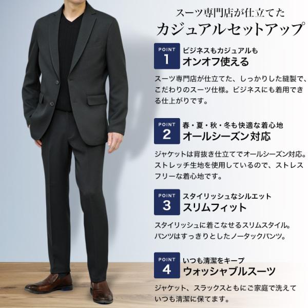 セットアップスーツ 上下 セット スーツ仕立て ノータック 上下洗える ウォッシャブル カジュアル ビジネス 春夏秋冬 おしゃれ リモートワーク
