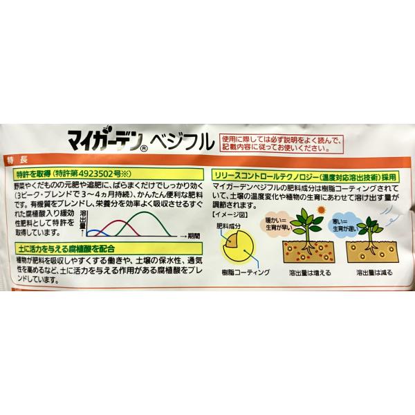 マイガーデンベジフルの肥料成分は樹脂コーティングされていて、土壌の温度変化や植物の生育にあわせて溶け出す量が調節されます。