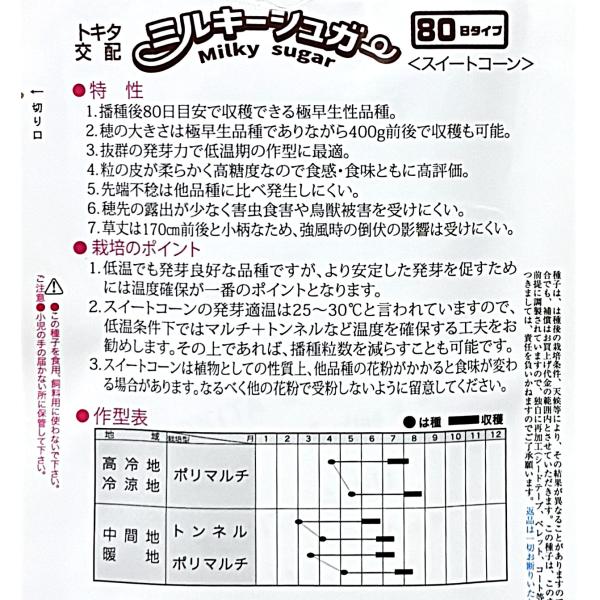 3袋以上でクーポン割引 ミルキーシュガー80 種 150粒 とうもろこし スイートコーン 低温発芽 極早生品種 送料無料 トキタ種苗 園芸 家庭菜園 栽培 美味しい