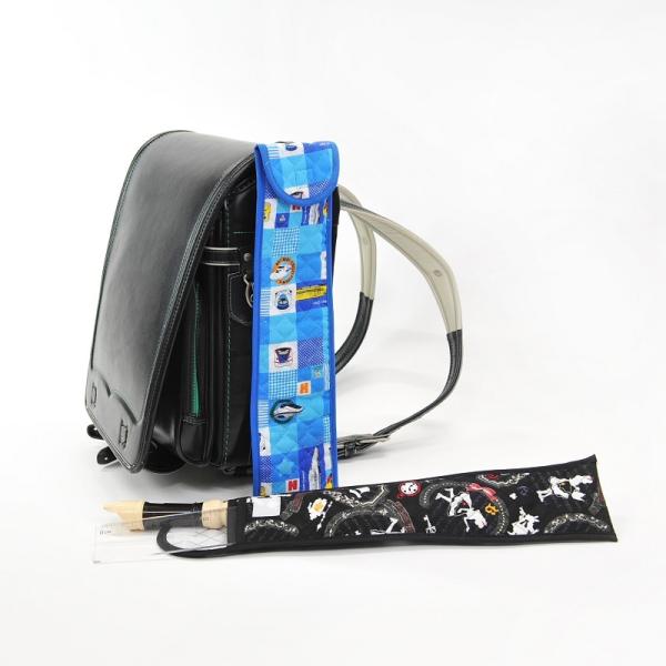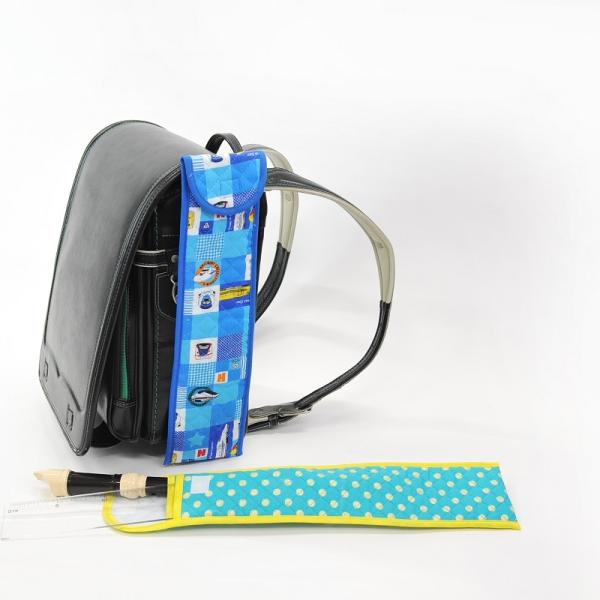 キルト生地使用 ランドセルに収まりづらいリコーダーと定規を一緒に収納。