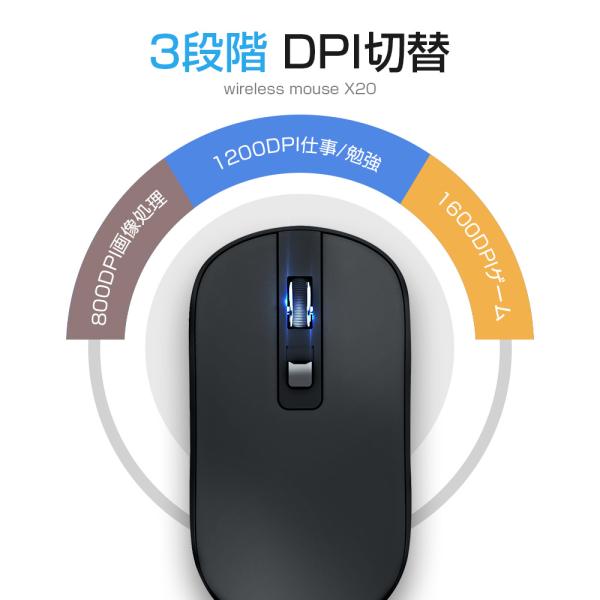 ワイヤレスマウス 静音 マウス USB充電式 ワイヤレス 2.4GHz 省エネルギー 3段調節可能DPI 光学式 高精度 軽量 持ち運び便利 有線/無線両対応