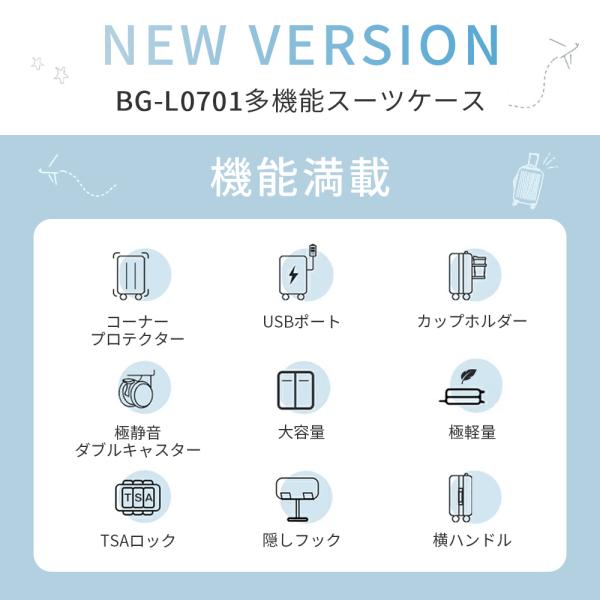 【日本製マスク特典開催】 スーツケース 機内持込み 大容量 静音 軽量 キャリーケース キャリーバッグ S/M/Lサイズ カップホルダー USB充電ポートファスナー
