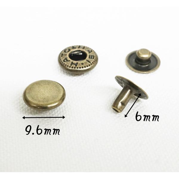 サイズ:頭-直径9.6mm, 足-長さ6mm, バネ-直径10mm, ダボ-直径9mm