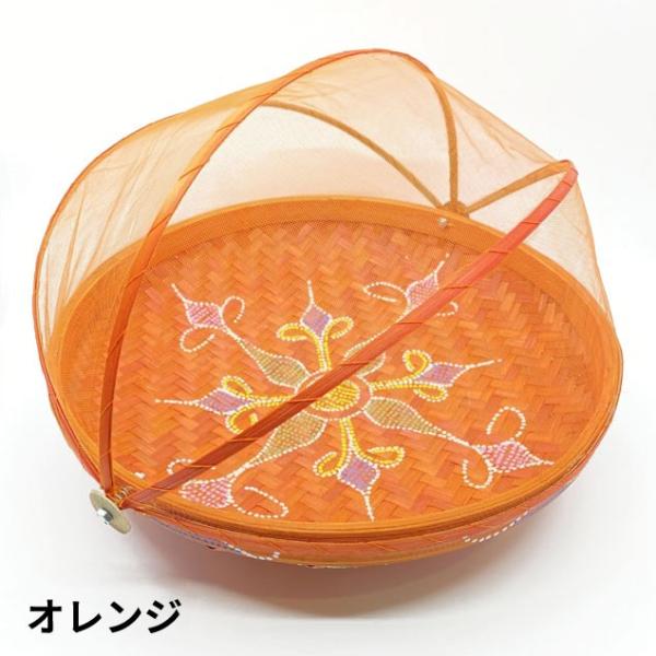フードストッカー 竹製 かや付き 丸型 L 6色 W36cm カラフル おしゃれ バンブー 網付 収納バスケット くだものカゴ