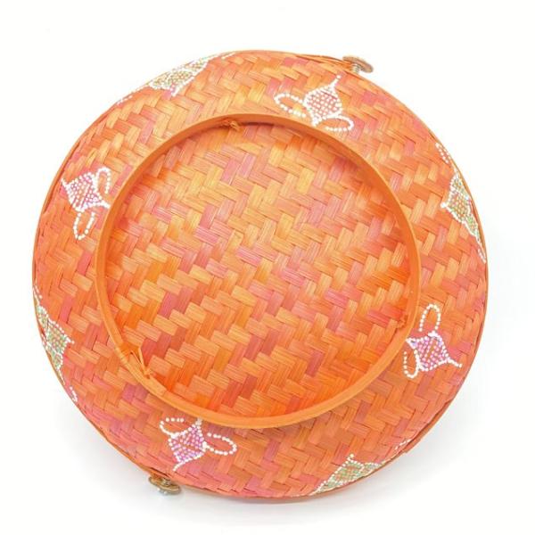 懐かしい雰囲気漂うバンブーで織られた収納バスケット。