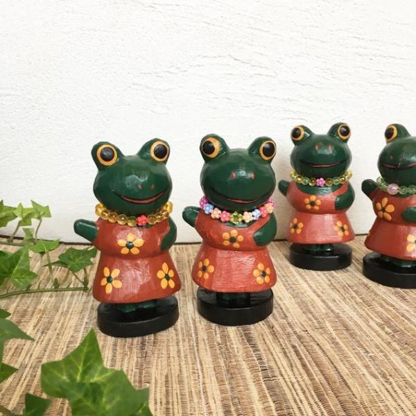 楽しそうにフラダンスを踊るカエル 木製 アジアン雑貨