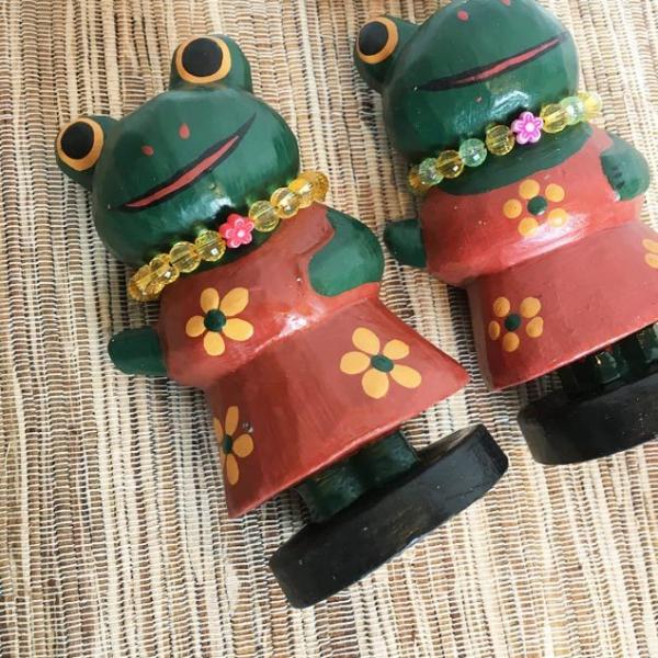 アジアン雑貨、人気の木彫り製品。フラダンスを踊るカエルちゃんの置物です。