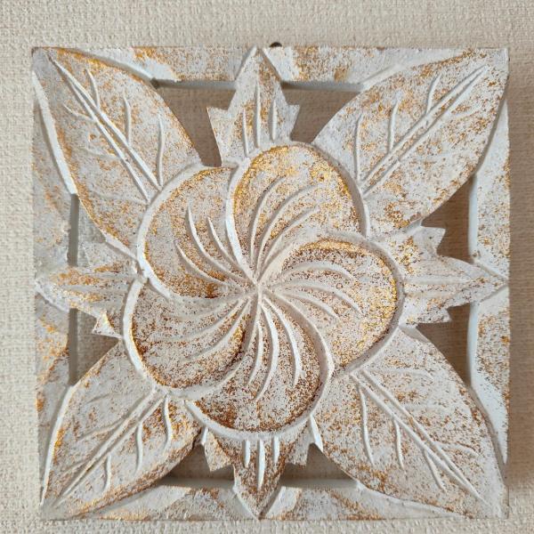 メール便対応可 木製レリーフ プルメリア 14.5cm角 ミニ MDF ウォールデコレーション バリ彫刻 壁掛け インテリア かわいい 木彫り