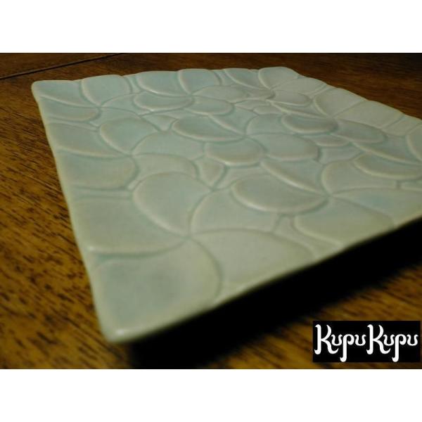 タバナン焼き 角皿 お皿 小 14×14 緑 プルメリア柄 陶器 食器 バリ島製 アジアン雑貨 バリ雑貨 キッチン 来客用 結婚祝い ギフト プレゼントにも