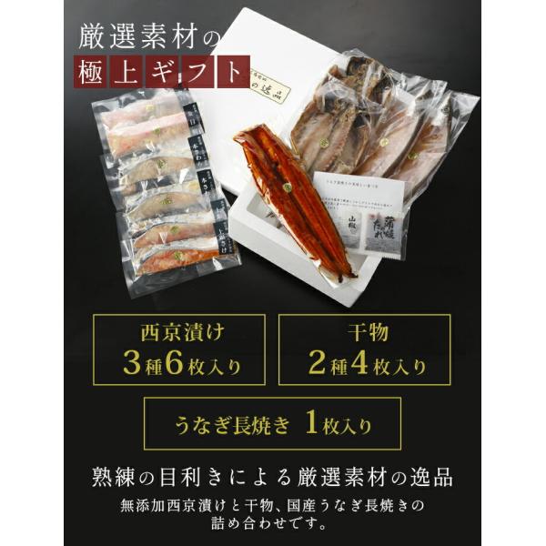 名称:西京漬けと干物とうなぎ長焼き詰め合わせ