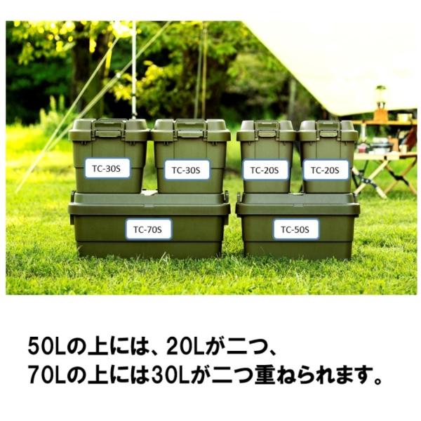【70Lの上には30Lが二つ枷ねられます。また、50Lの上には20Lが二つ重ねられます】