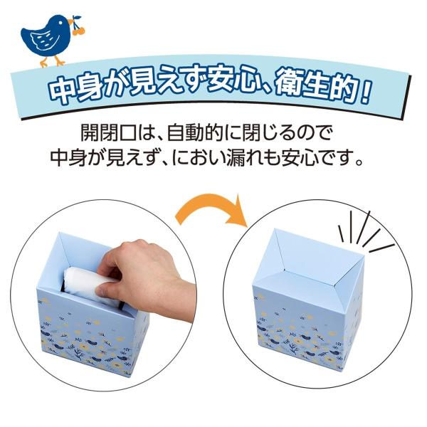・開閉口が手を抜けば閉じるので中身が見えず、におい漏れも安心です。