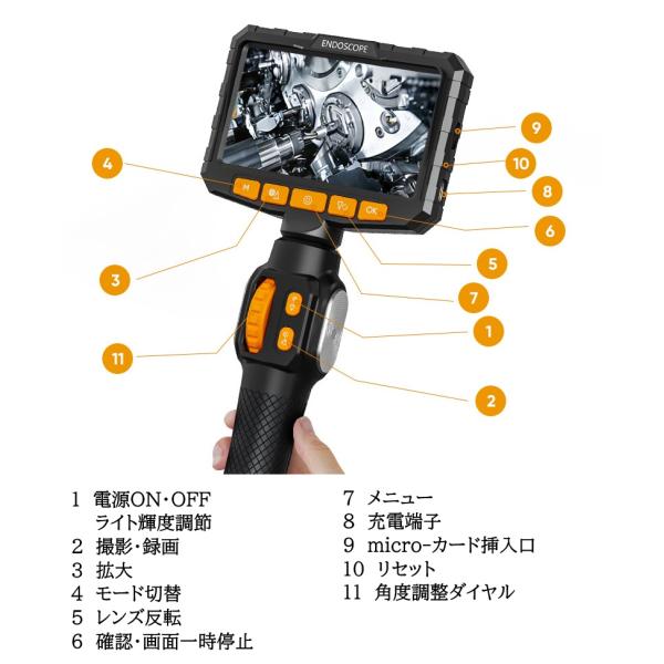 先端可動式 極細レンズ 6.25mm 4.3inch大画面モニター付き 首振り マイクロスコープ ファイバースコープ グリップあり