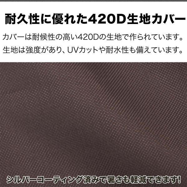 生地は丈夫で耐久性のある420Dの生地を採用。通常よりも高デニールでしっかりとした強度があります。裏面には遮光性のあるシルバーコーティング済み。しっかりと耐水性もあり安心して使用できます。