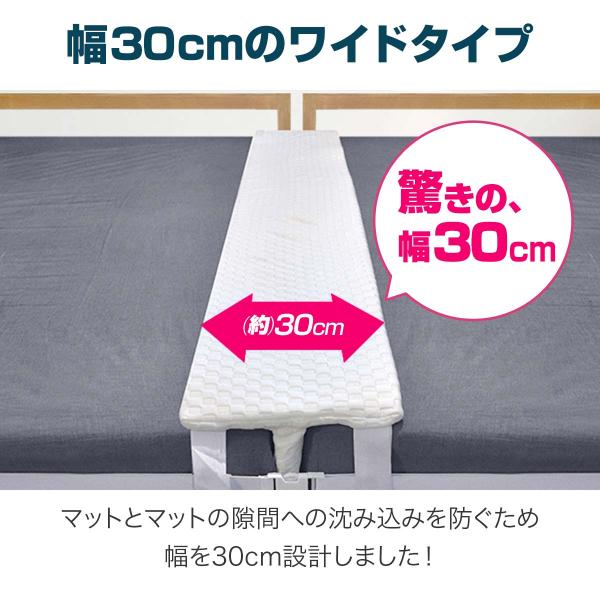 幅が狭い隙間パッドでは、マットレスの間の隙間に沈み込んでしまう…そんな隙間への沈み込みを防ぐため「幅30cm」に設計しました。