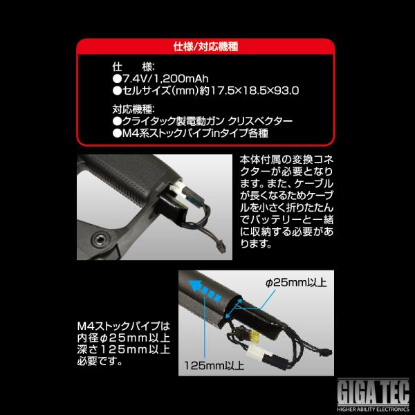 GIGA TEC(ギガテック)EVOリポバッテリー 7.4V/1200mAh ストックパイプイン【メール便対応】