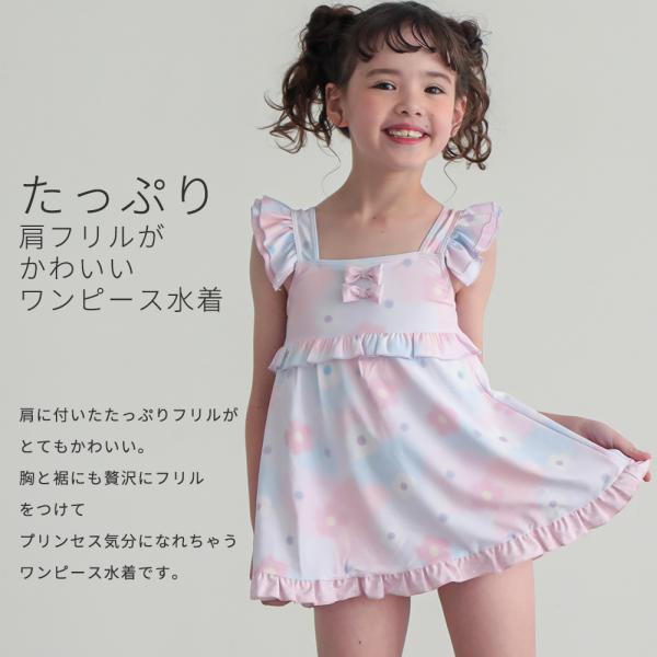 子供 水着 女の子 キッズ 女の子 ワンピース水着 帽子付き かわいい リボン プリンセス フリル シャーリング 110 120 130 140 送料無料 学校用 幼稚園 保育園