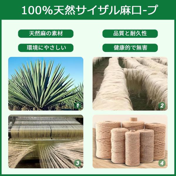 【6mm適用場所】麻縄はボロボロになったキャットタワーの爪とぎ場所が補修できます。園芸DIY、花瓶、壁飾り、手芸や飾りに適しています。家のテーブルやソファーの足、水道管、角柱、階段手すりなどの家具に巻きられて、引っかかれるを防ぐ効果があり、家具などを保護できます。