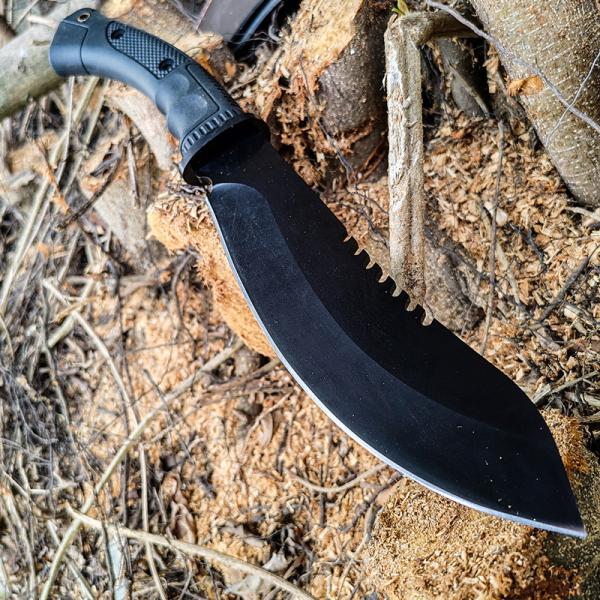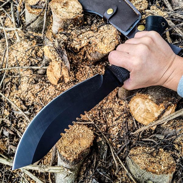 【用途】バトニングに特化したフルタング構造の厚刃手鉈です。骨切り包丁としての用途はもちろんで、野外活動でのバトニング、薪割り、藪漕ぎ、ジャングルなどもガンガン使えます。